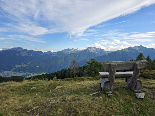 Welch ein Genuss ist es, wenn man zuerst im Wald wandert und sich dann plötzlich der Blick nach Nordwesten zu den Hohen Tauern hin öffnet?